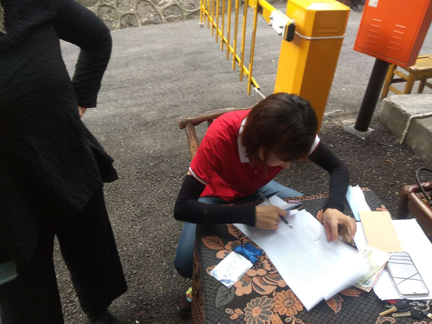 (圖為王雪蓮?fù)驹谀吓_(tái)路2號(hào)收取物業(yè)服務(wù)費(fèi))