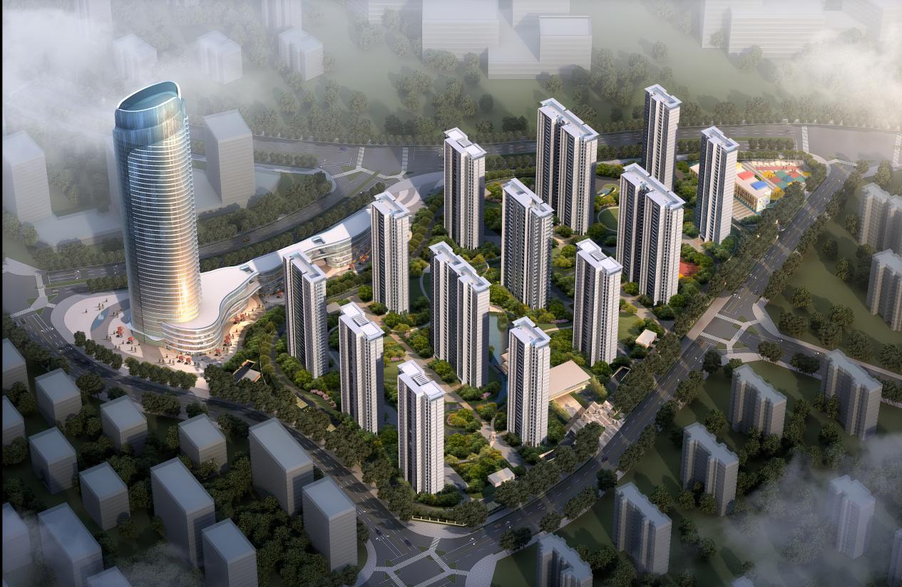 項目占地面積約209畝,總建筑面積約40萬方,容積率約2.8,綠化率達30%。本項目建筑設(shè)計遵循“以山水之蘊,天地之氣充盈其間,盡顯人文內(nèi)涵”的原則,整個項目由13棟住宅樓和1棟199米超高層寫字樓(金融中心)和2棟智創(chuàng)中心,1棟鄰里中心,1個9班雙語幼兒園組成。